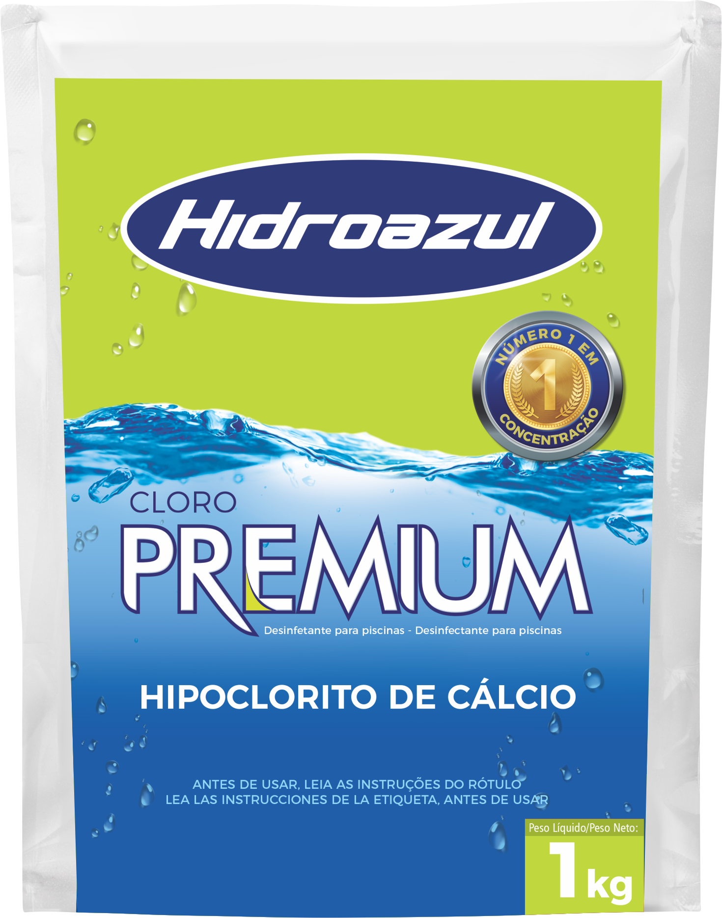 TRATAMENTO DE CHOQUE: Dissolva 13g para cada 1.000 litros de água e utilize produto Hidroazul específico para decantação. Em seguida, deixe a água em repouso por 12 horas e aspire o fundo da piscina, na posição “drenar”.